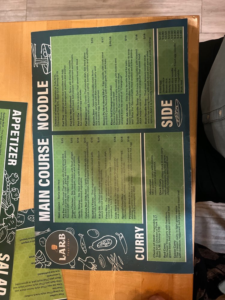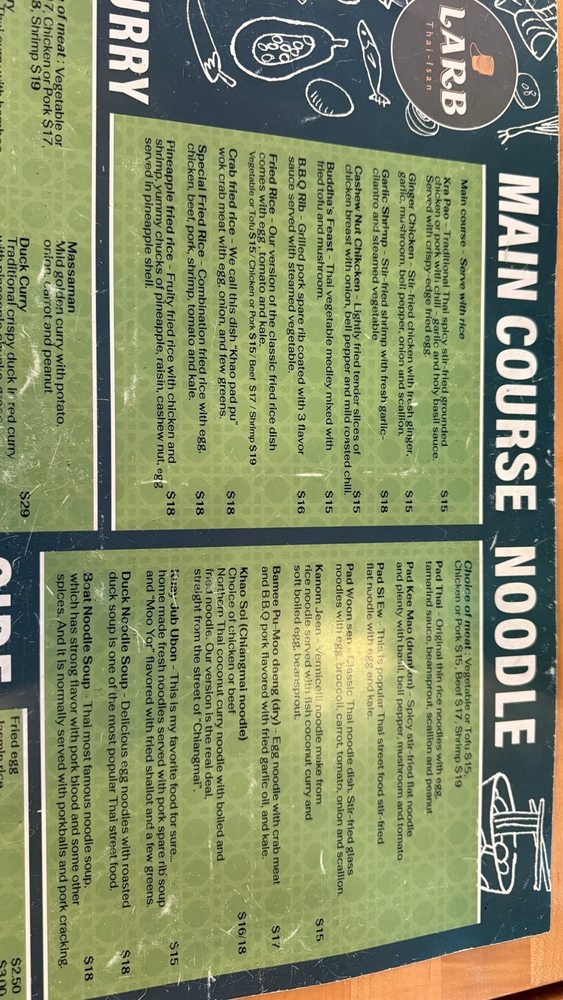 Introducing the menu at Larb Thai-Isan is a gastronomic journey through the heart of Thailand's rural Isan region. This inviting eatery, located at 6234 N Federal Hwy, Fort Lauderdale, boasts a vibrant array of authentic dishes that cater to every palate, including numerous vegetarian and vegan options.